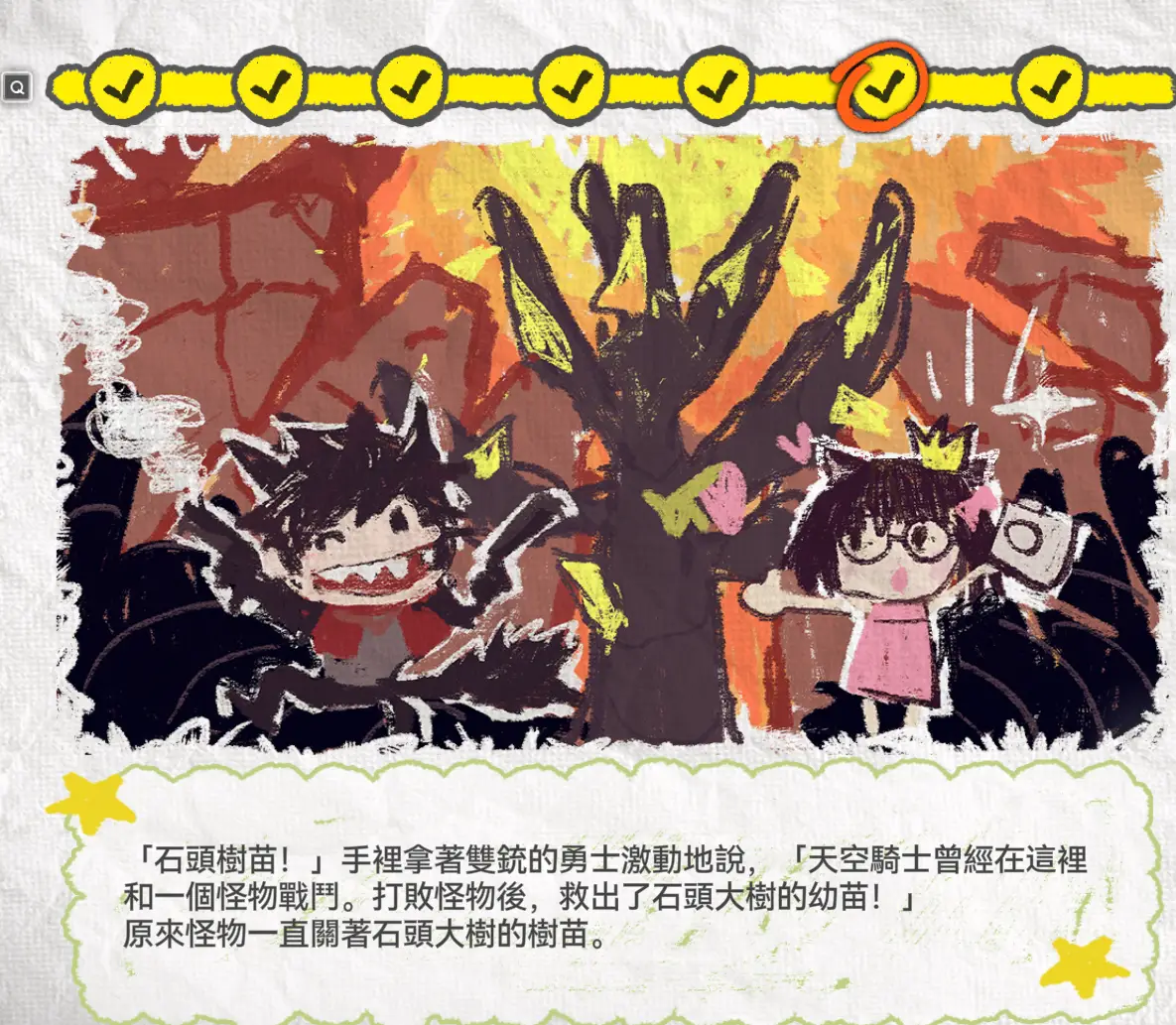 故事描述是狼衛和小女孩講述天空騎士打怪物的故事