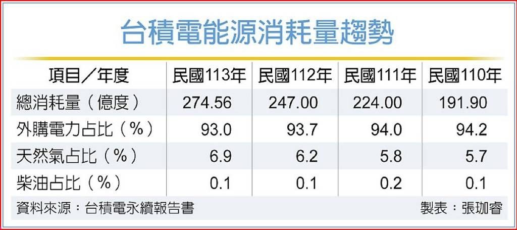 台積電113年度永續報告書指出,該年度總用電量達274.56億度、占全台總電力消耗量約9