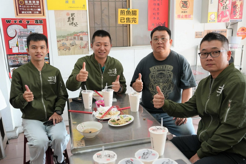 《三清》導演陳毅(左2)與拍攝團隊感受台南滿滿人情味。(《三清》劇組提供)