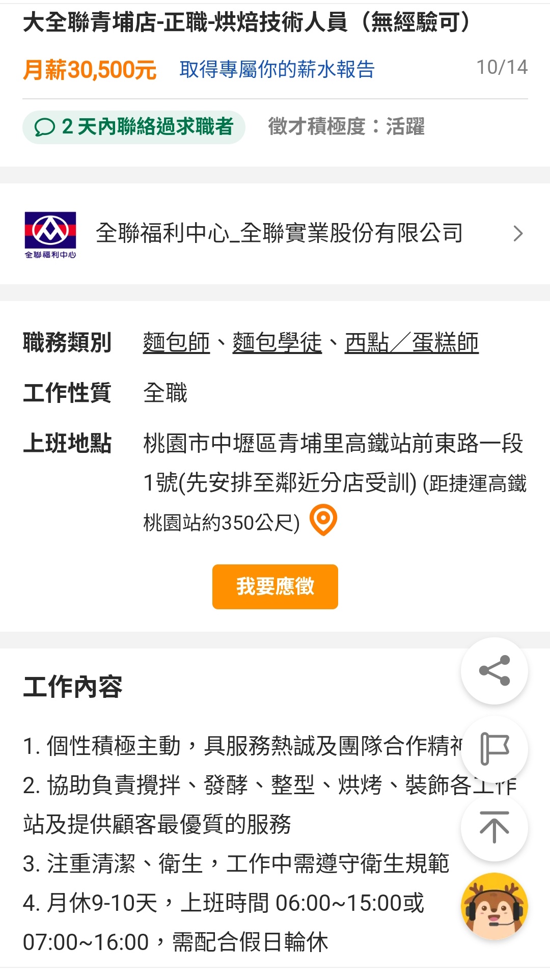 3. 主要工作區間為15:00-06:00,每日排8小時大夜班輪班