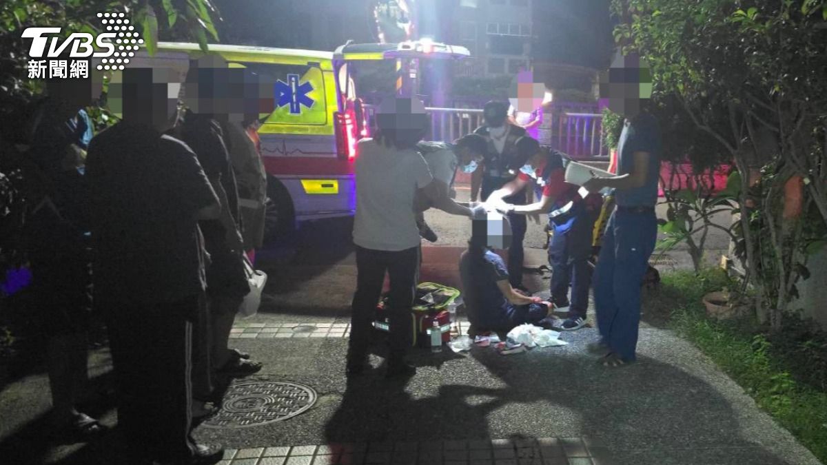 案發當時,救護車緊急抵達現場,大批民眾圍在社區門口,目睹受害女子頭破血流的慘狀