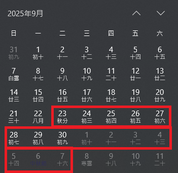 9/23~10/7號 總共15天