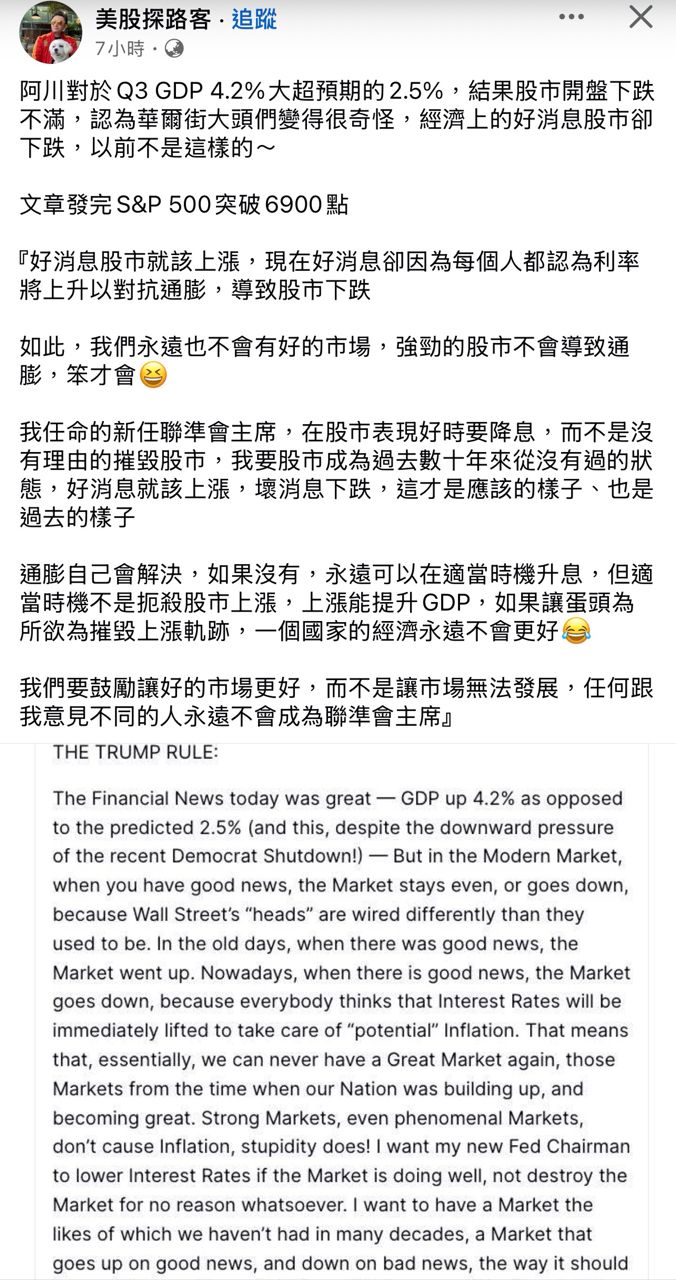 標普 500 6909.79 ▲ 31.30 (+0.46%)