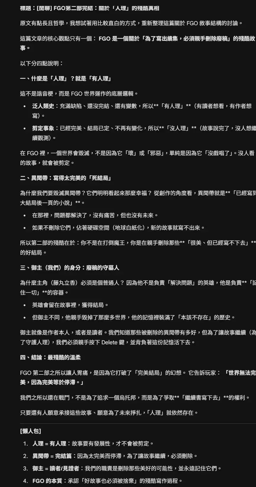 如果必須用一句話總結FGO的敘事本質,那會是: