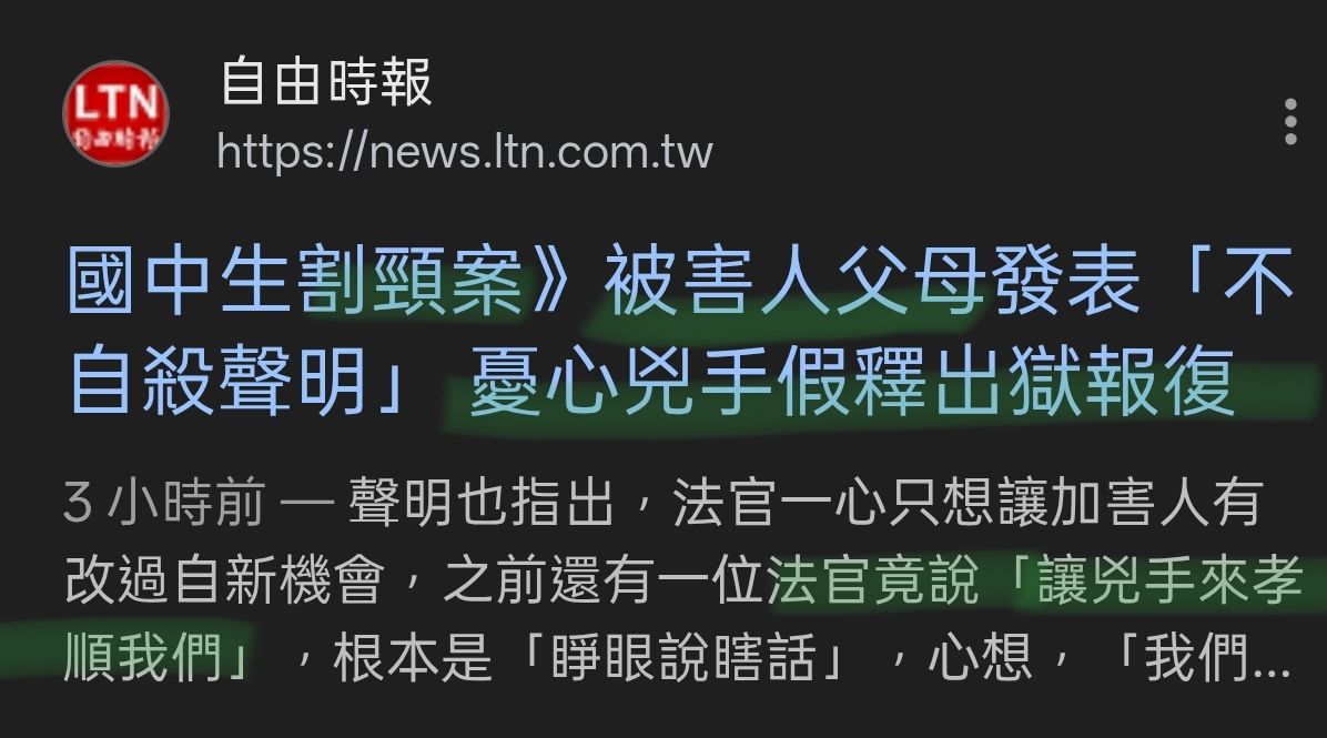 首頁 PTT分享 政黑 [討論] 綠法官想讓「殺人犯照顧被害者父母」? [討論] 綠法官想讓「殺人犯照顧被害者父母」? 政黑 h6351803 2025-12-23 16:51 推 3 https://i.mopix.cc/dSrehx.jpg 國中生割喉案的被害者父母表示 綠色廢死法官一心想讓加害者判輕一點 竟然說「可讓加害者來孝順你們」 綠法官說的這是人話? 每天看殺自己小孩的兇手在面前晃 是要把受害者父母嚇到不用吃飯睡覺? 不愧是找殺人犯來改革的台灣綠色司法 https://i.mopix.cc/6EZfHT.jpg 推文討論 7 1F 推 omanorboyo 12/23 16:56 印度法官嗎 強姦完說娶了就沒事 2F 推 momoMax 12/23 17:07 完美的噁心老百姓 3F 推 bbbing 12/23 16:58 那是藍白法官啦,我信了 4F 推 h6351803 12/23 17:22 https://i.mopix.cc/U1ZZUl.jpg 5F 推 Madridtop 12/23 16:52 不意外,綠=垃圾的代表 6F 推 tsubasa0723 12/23 16:52 蟾蜍法官就是狂 7F 推 icrose 12/23 16:55 這和讓受害人嫁給強暴犯一樣